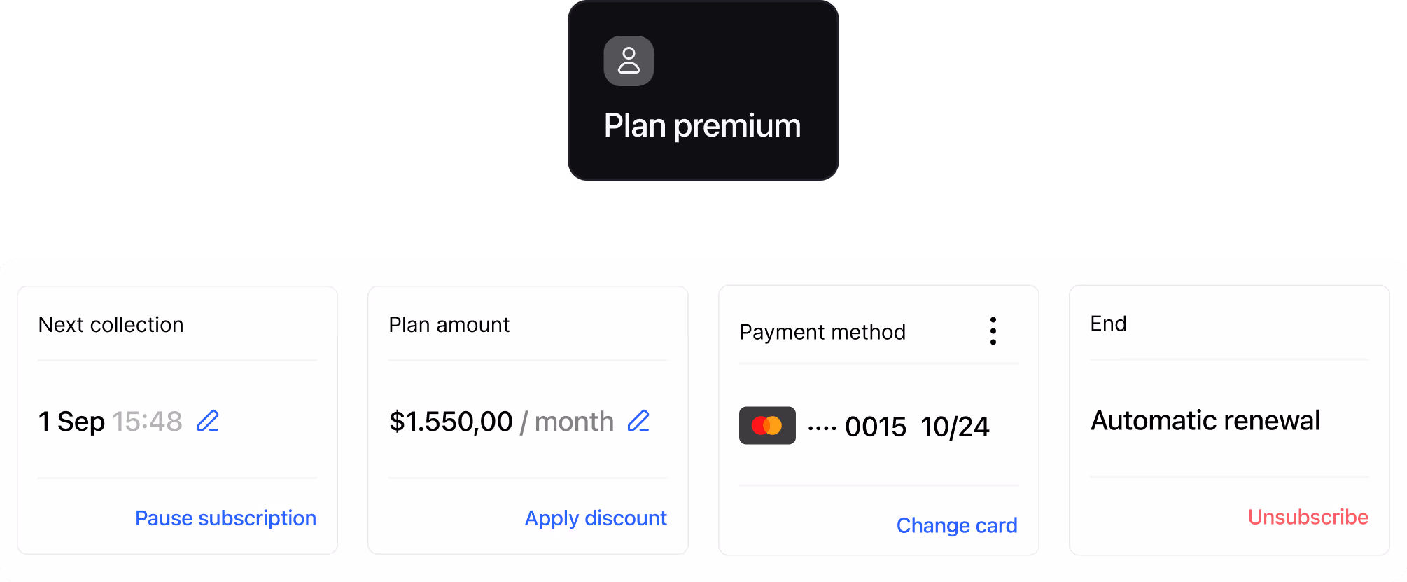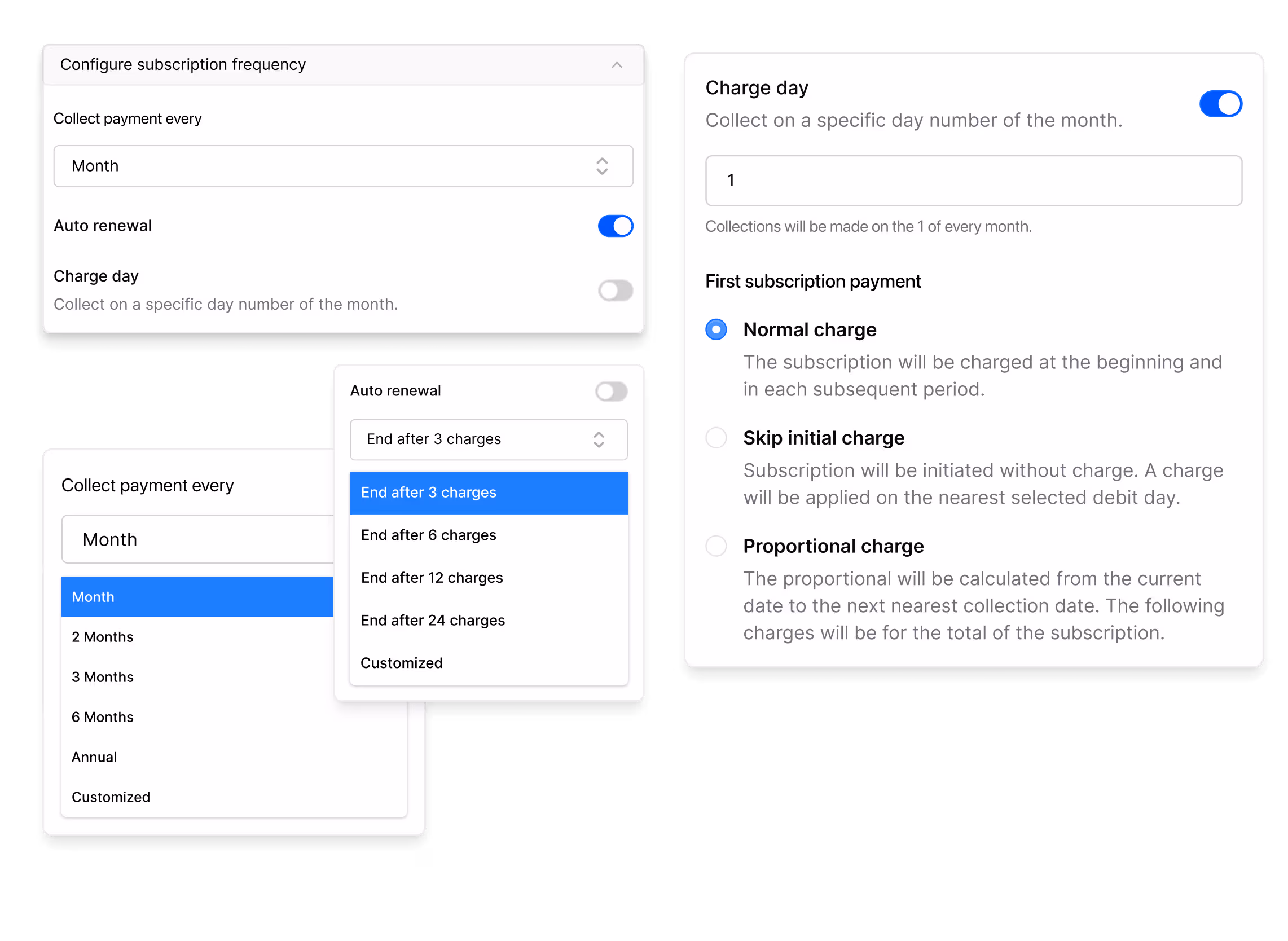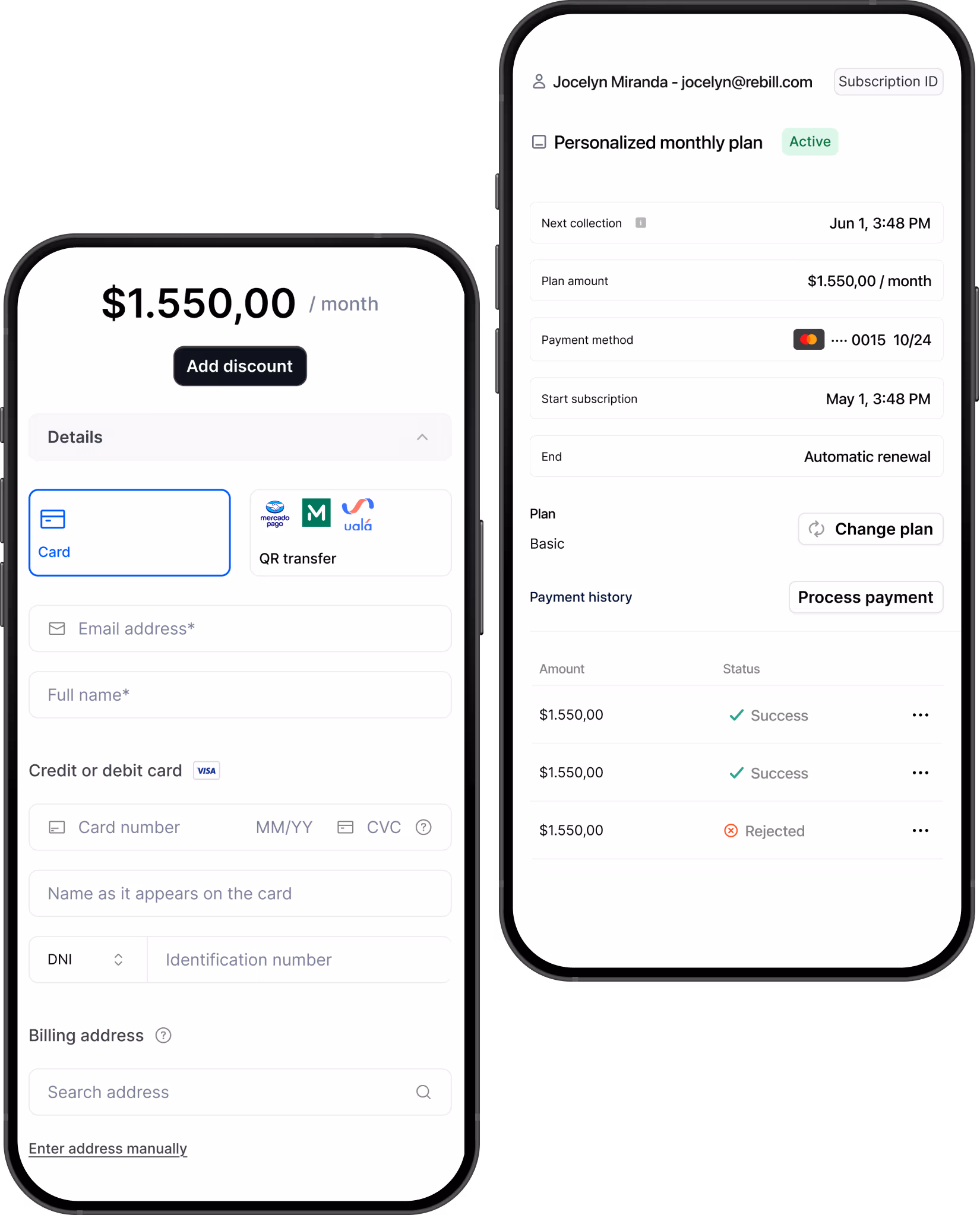 Rebill is fully customizable so you can set up billing models according to your industry, whether it's fixed subscription, pay-as-you-go, installment payments, or annual memberships.